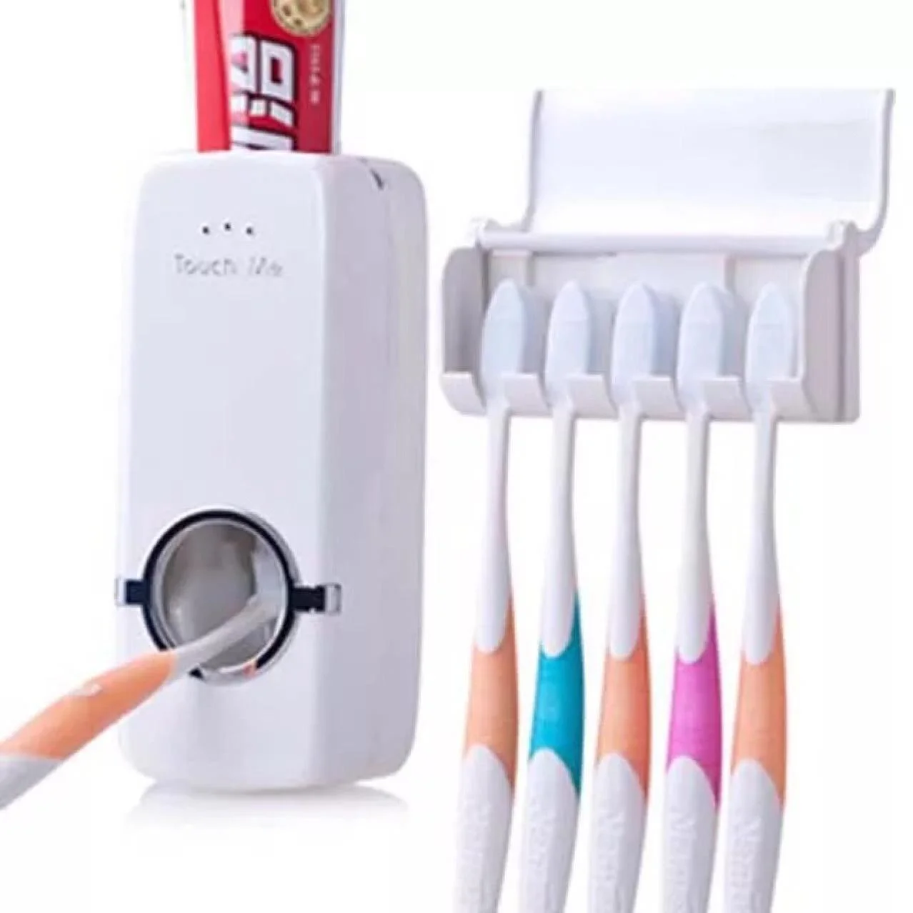 Wall Mount Stand Auto Dispenser+Five-Slot Toothbrush Organizer Bathroom Tooth Brush Holder