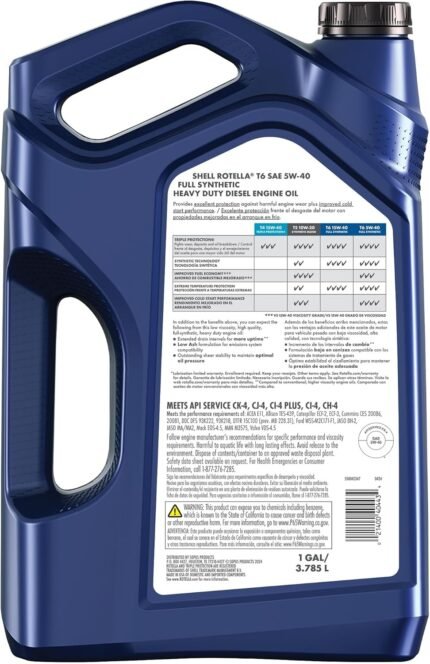 Size: 1 Gallon Style: 3-Pack Configuration: 5W-40 Viscosity 5w_40 Brand Shell Rotella Liquid Volume 128 Fluid Ounces Package Information Bottle Vehicle Service Type