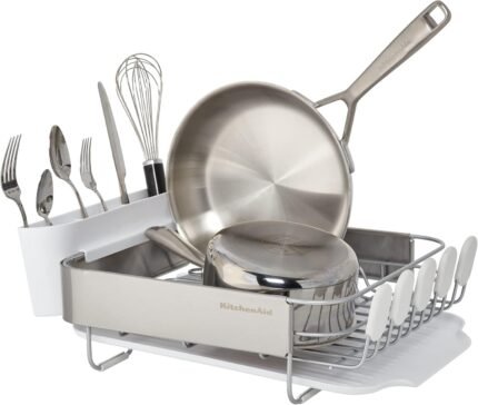 This 16.06 Inch Compact Stainless Steel Dish Rack in a clean white finish is a space-saving kitchen essential designed for