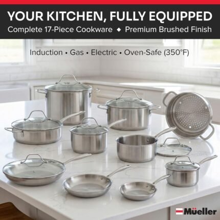 This 17-Piece Tri-Ply Stainless Steel Cookware Set is a professional-grade kitchen essential designed for home chefs and culinary enthusiasts, featuring