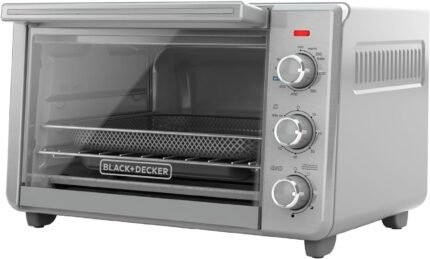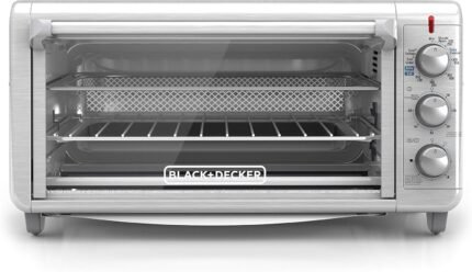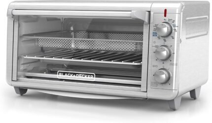 5-in-1 Air Fryer Toaster Oven, Fits 12″ Pizza/6-Slice Toast, Convection Air Fry Tech, 60-Min Timer, Stainless Steel