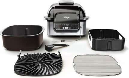 5-in-1 4QT Indoor Grill Air Fryer, Integrated Smart Probe, 500°F Cyclonic Heating, Ceramic Stainless Steel, 1760W