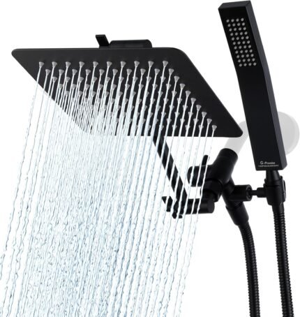 8-Inch Square Dual Shower Head Combo, All-Metal Handheld with Adjustable Extension Arm (Matte Black)