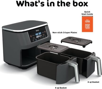 8QT 6-in-1 Dual Basket Air Fryer, Independent Zones, Smart Finish & Match Cook