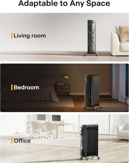 1500W Oil Filled Radiator Heater, 3 Modes Electric Indoor Heater with Remote & 24H Timer for Large Room
