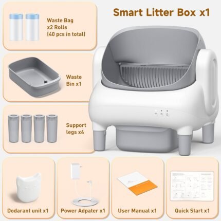 Automatic Cat Litter Box,Self Cleaning Litter Box for Multiple Cats with Open Top Design,App Control, Safety Protection,Ultra-Quiet,Easy Setup,Light Gray