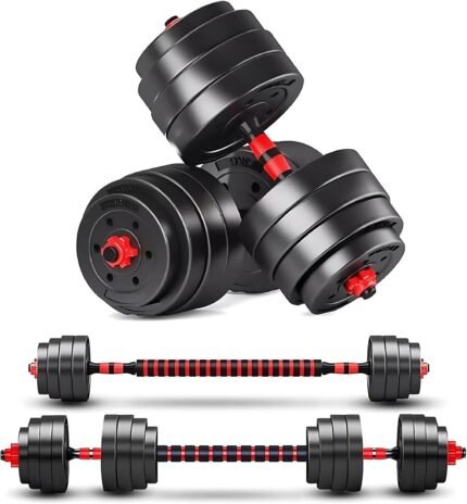 Red 80lbs(40lbs*2)Adjustable-Dumbbells-Sets,Free Weights-Dumbbells Set of 2 Convertible To Barbell A Pair of Lightweight for Home Gym,Women and Men Equipment