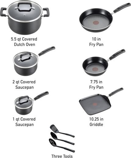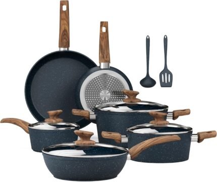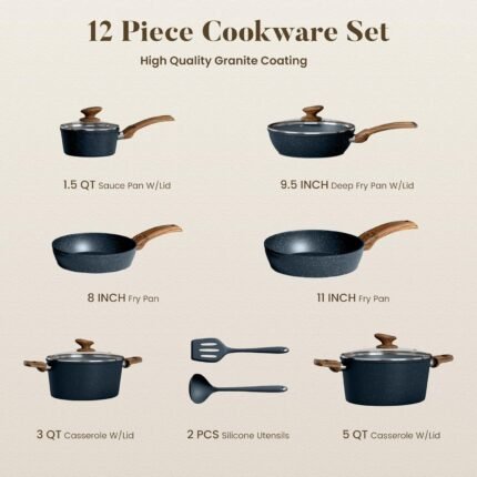 This 12-Piece Induction Nonstick Cookware Set is a practical kitchen essential designed for modern households, featuring induction-compatible construction that works