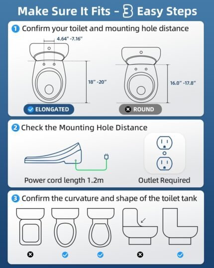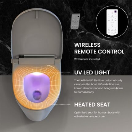 This premium electric bidet toilet seat combines advanced functionality with user-friendly design, tailored to fit most residential elongated toilets (including