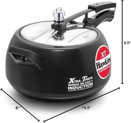 Hawkins Contura Hard Anodized Induction Compatible Extra Thick Base Pressure Cooker, Black, 5L Size: 5.3 Quarts Brand HAWKINS Capacity 5 Liters