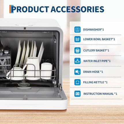 Portable Countertop Dishwasher – 7-Program System for Home, RV, and Apartment – Wash Dishes, Glass, and Baby Products – Hookup Required