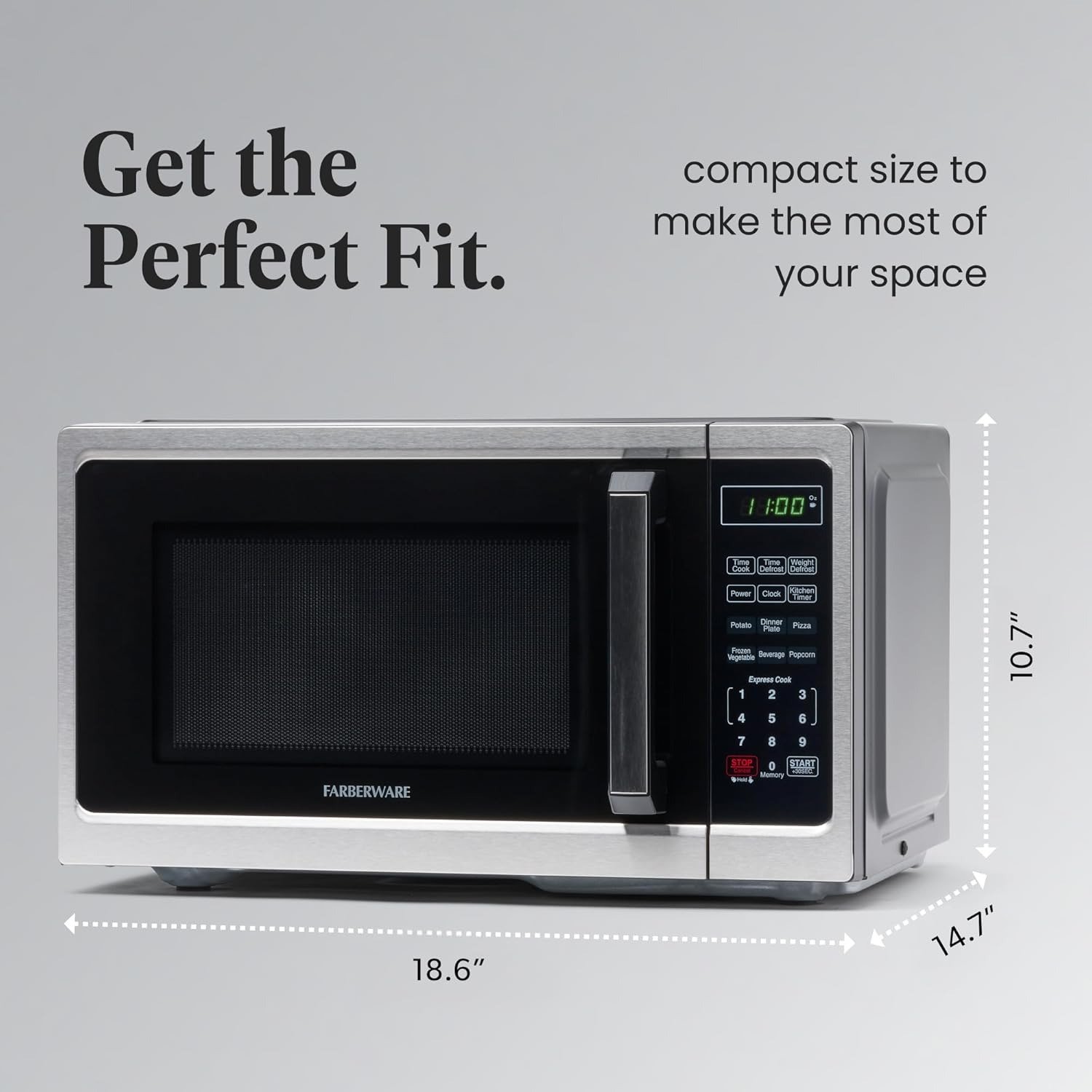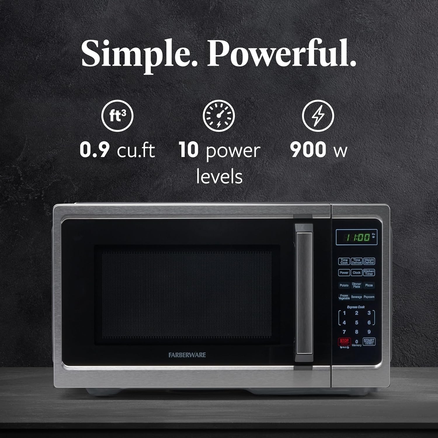 • POWERFUL SETTINGS: This microwave has ten power levels with multi-stage cooking. You can fully customize your cooking with six one-touch options, including popcorn, potato, and pizza. Defrost by weight or by time settings to make quick work of any task.