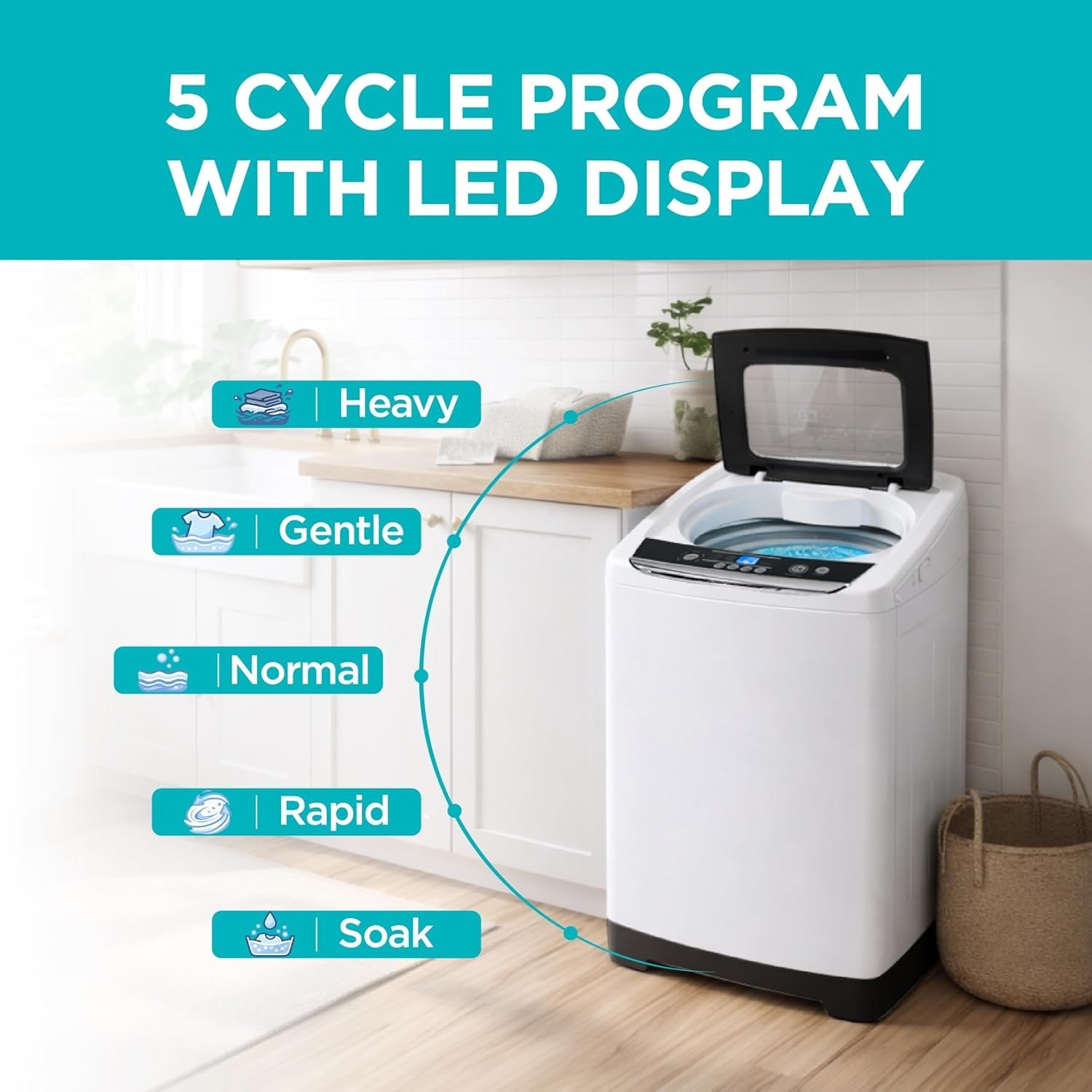 - Safety Features: Our small washing machine features auto unbalance detection to ensure laundry is cleaned at peak performance, as well as auto shutoff safety features and child lock protection
