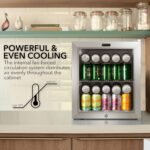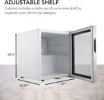Equipped with a slide-out chrome wire shelf, the fridge offers flexible storage options, allowing you to accommodate different bottle designs and organize drinks by category. The freestanding installation and compact dimensions (17″W x 18.75″D x 20.5″H) make it easy to place against walls or in corners, maximizing space while minimizing its footprint. The unit uses eco-friendly R600A refrigerant and operates at 85W power consumption, balancing performance with sustainability.