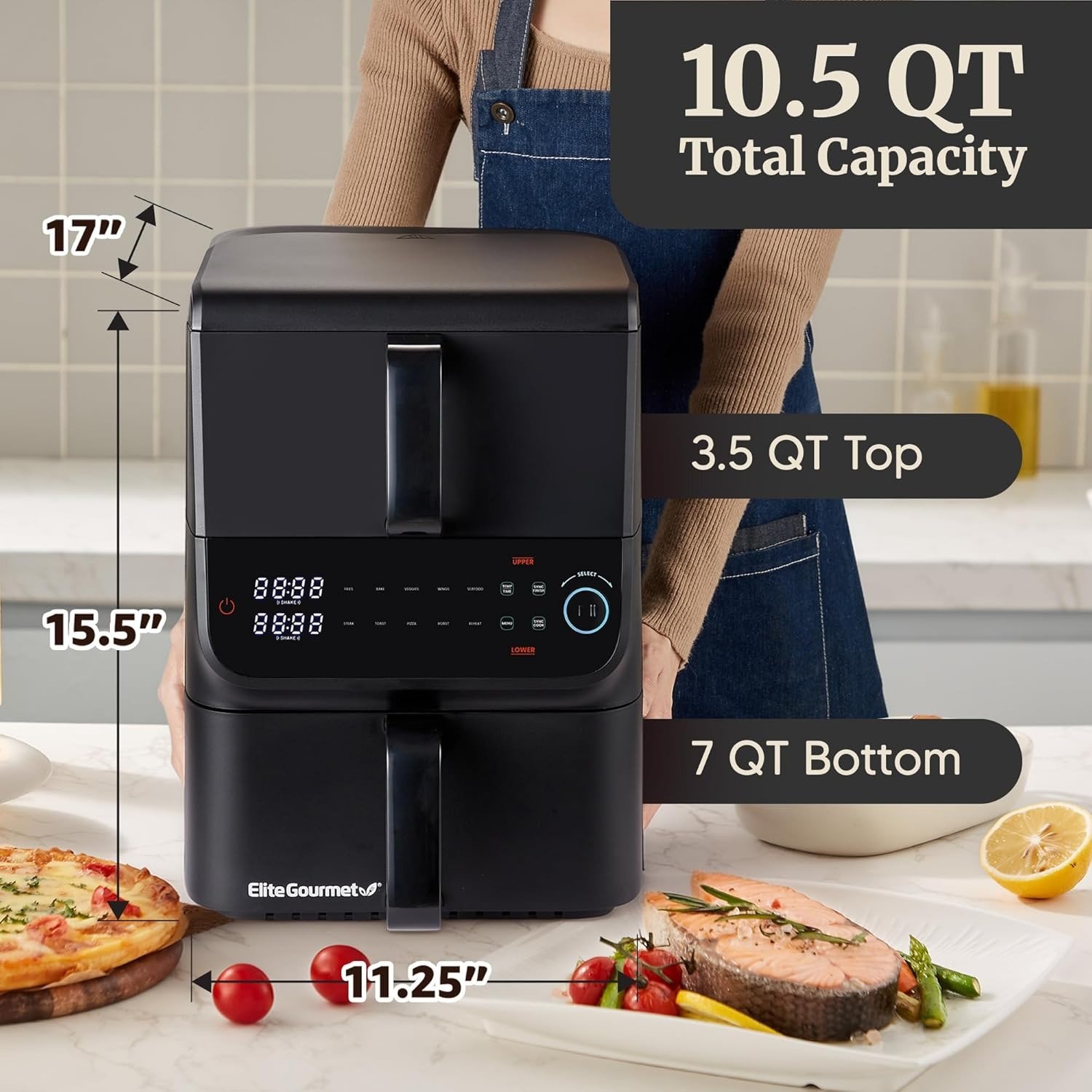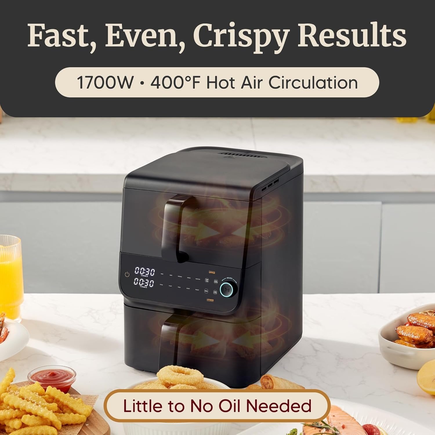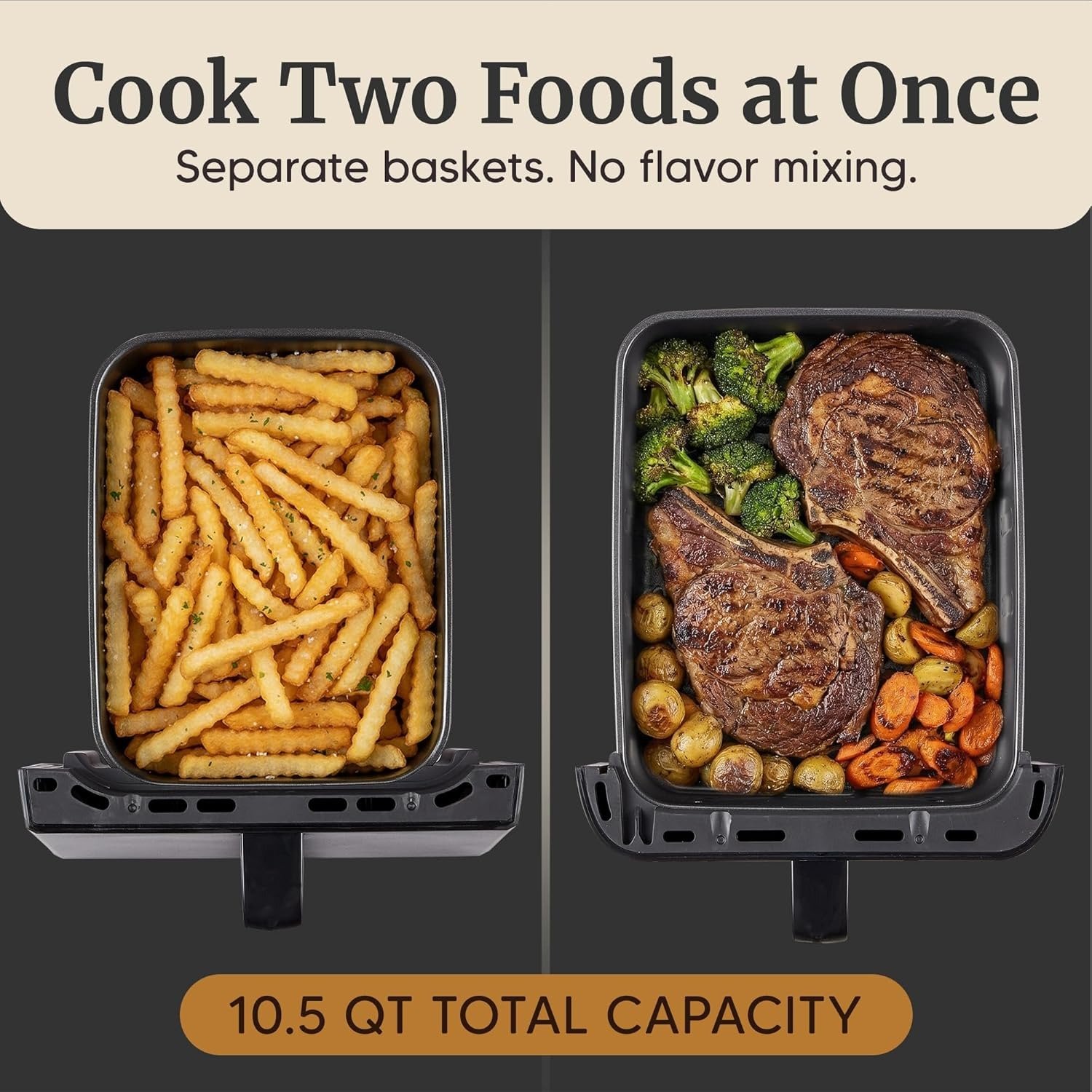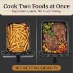 10.5QT Dual Stacked Air Fryer, Sync Cook & Finish, 10 Presets, PFAS-Free Nonstick Baskets, 1700W, Rapid Air Circulation, Black