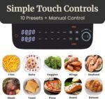 Cooking Functions: 10 One-Touch Presets (Fries, Bake, Veggies, Wings, Seafood, Steak, Toast, Pizza, Roast, Reheat) + Manual Control
