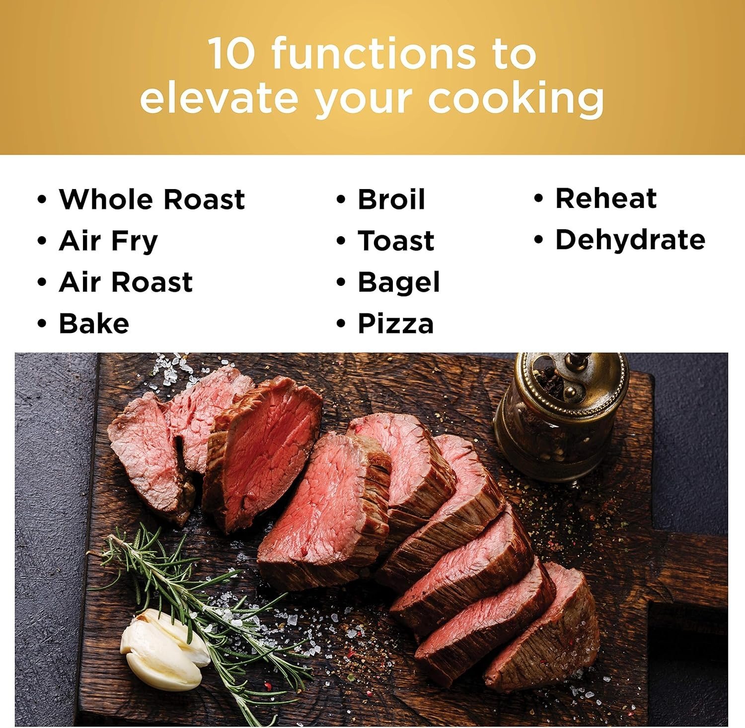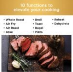 Cooking Functions: 10-in-1 (Air Fry, Air Roast, Bake, Whole Roast, Broil, Toast, Bagel, Dehydrate, Reheat, Pizza)