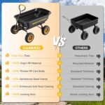 - 【EFFORTLESS DUMPING】Our yard cart is equipped with a front-handle frame that allows the cart wagon to tilt up to 90° for fast, effortless dumping. You can unload contents smoothly without heavy lifting, saving time and reducing strain during yard work