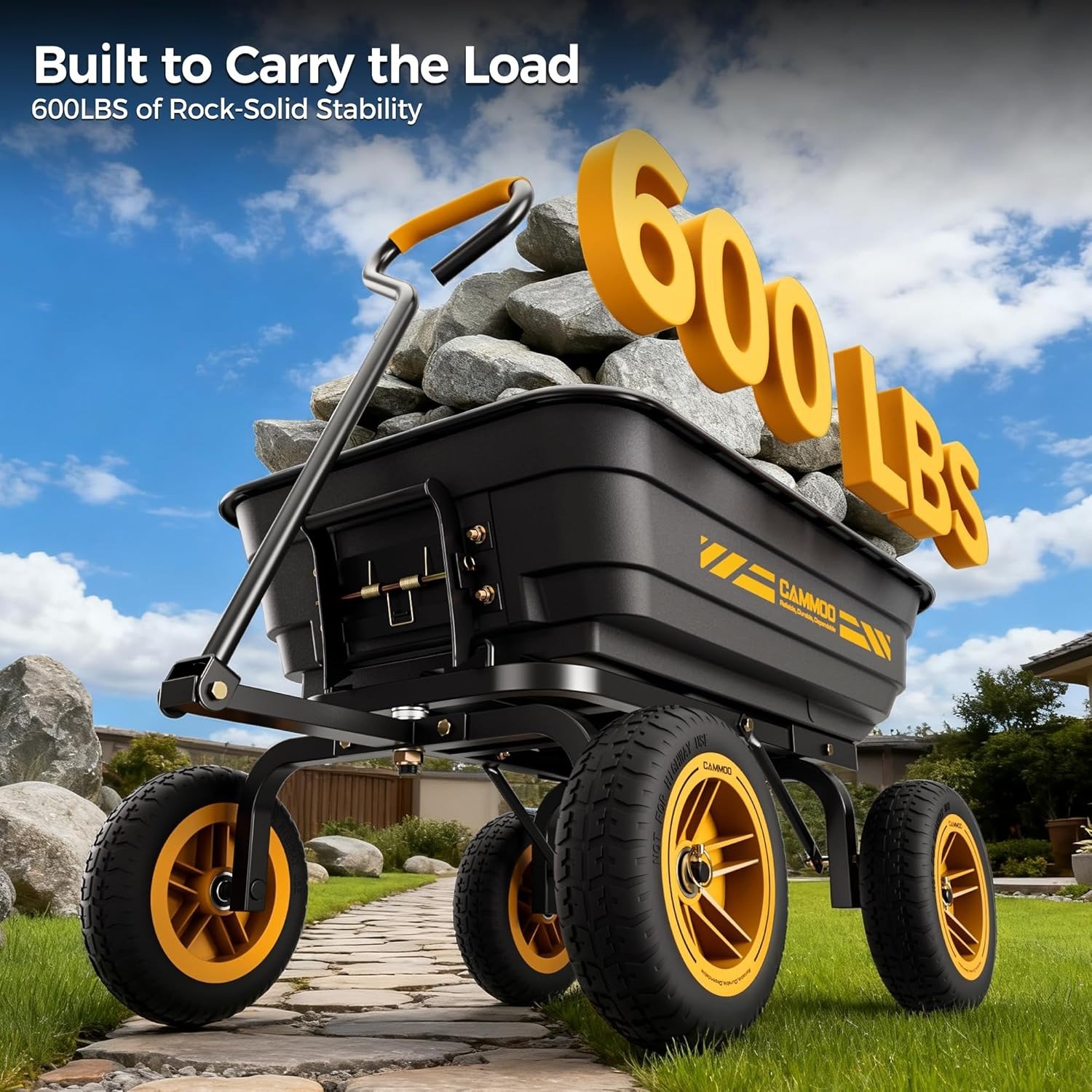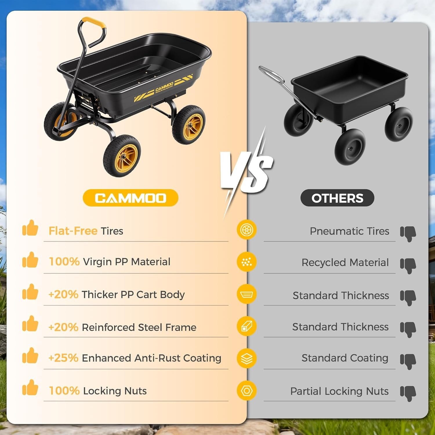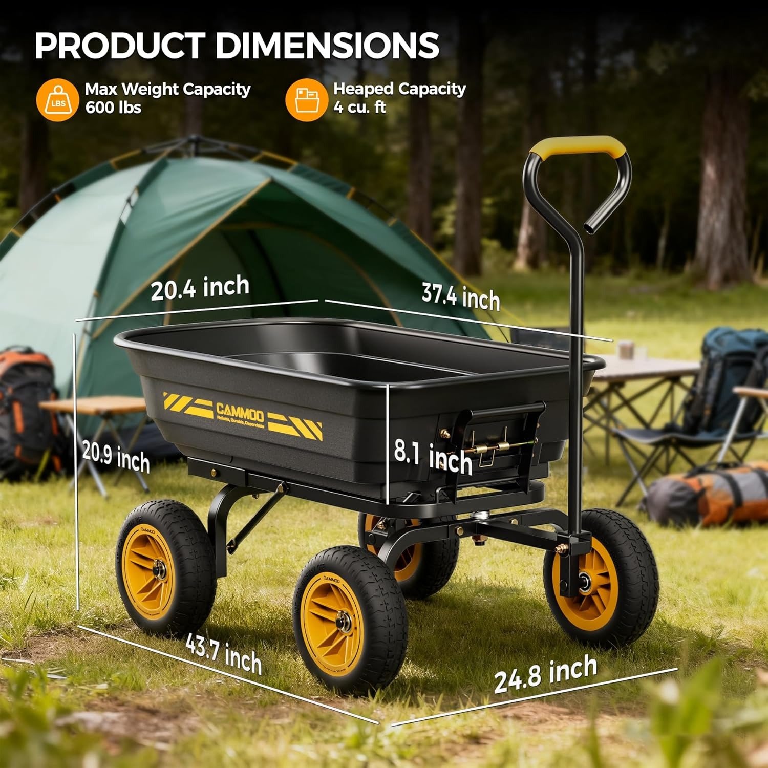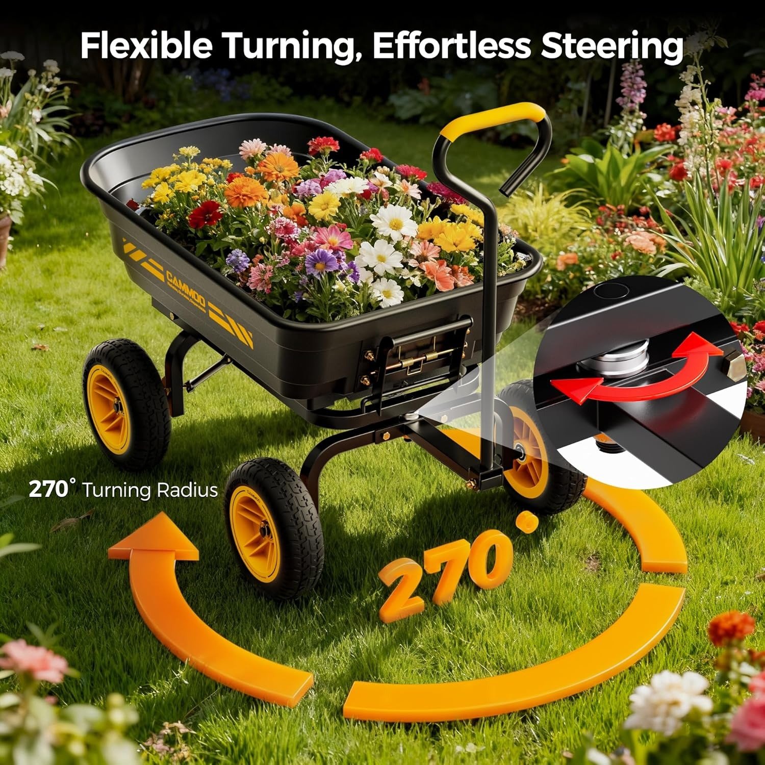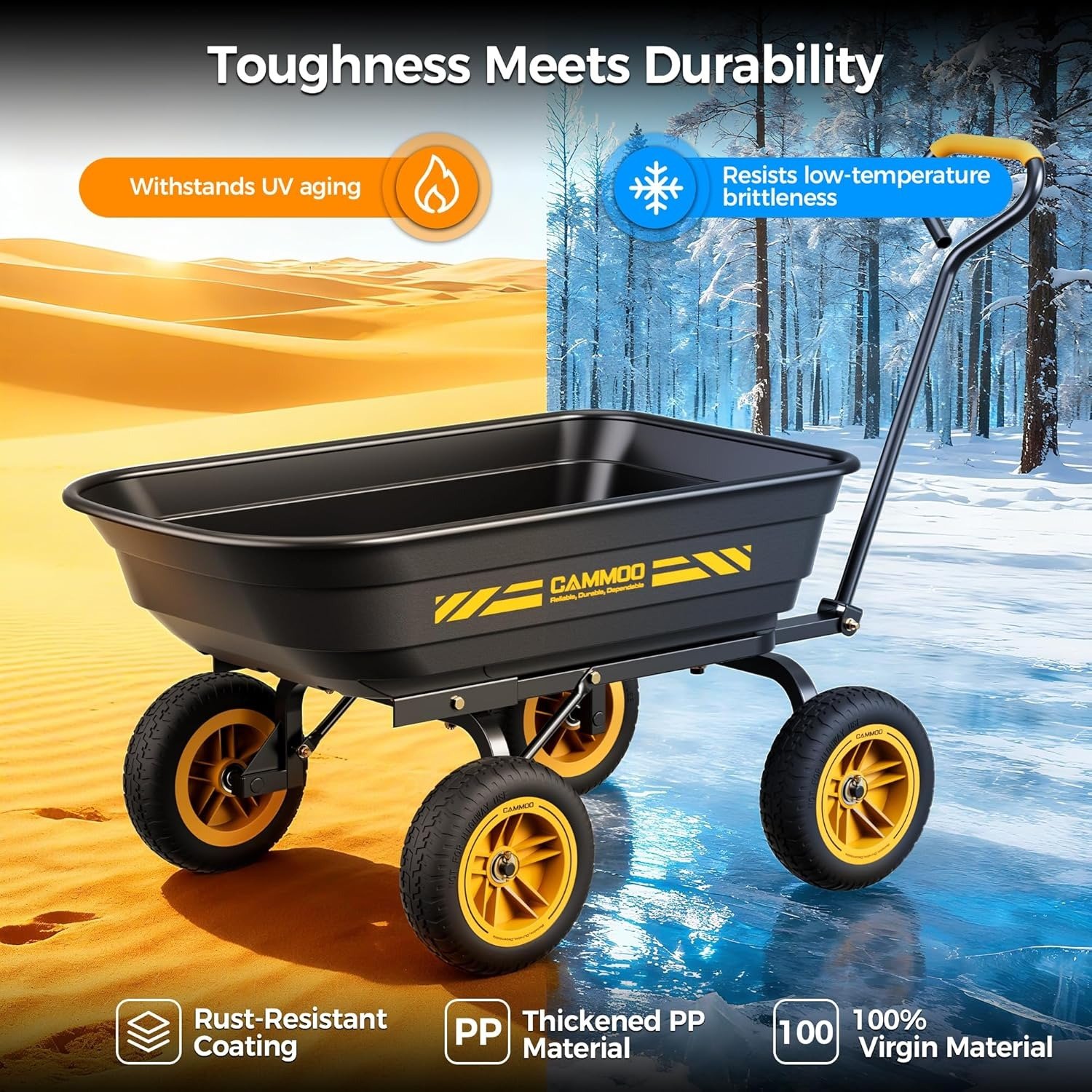 - 【OUTDOOR VERSATILITY】Our dump cart is your reliable helper for outdoor tasks. It carries firewood, tools, plants, mulch, or yard debris with ease. Its sturdy build handles tough jobs in the garden, lawn, or farm all year round. Whether for cleanups or daily chores, our cart keeps outdoor work simple, efficient, and less tiring