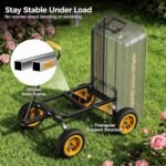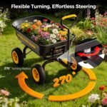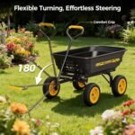 - 【EASY MANEUVERABILITY】Our garden cart on wheels is built to follow your every move with ease. The handle rotates 270° side to side and 180° up and down, giving you full control when turning or pulling over uneven ground. The EVA-padded handle feels soft and steady, reducing strain during long use. Even when fully loaded, our dump cart moves smoothly and makes yard work easier from start to finish