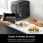 Special Features: Space-Saving Stacked Design, 4-Food Cooking (2 Racks per Basket), Independent Dual Zones, Smart Finish Sync, Match Cook Setting Copy, Programmable, Temperature Control, Built-In Timer, Automatic Shut-Off, Nonstick Coating, Dishwasher-Safe Parts