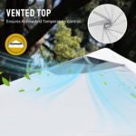 - HIGH GRADE STEEL FRAME – The durable, high-grade, corrosion-resistant steel truss frame with hardened through bolts comes pre-assembled and can be set up without any tools. Engineered to support up to 120 lbs. distributed across the frame, it ensures robust and reliable performance. The extended ceiling assembly and upgraded high peak design make it easier for rainwater to run off, preventing water pooling on the canopy. Perfect for extended outdoor use at markets, festivals, and exhibitions.