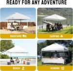 - ONE BUTTON EASY SET UP – Our 10×10 pop up canopy tent features patented one push center lock tech. With just a single push, the central hub locks the poles in place. Designed for the next generation, this outdoor canopy for patio can be set up by two people in seconds without any tools. Three adjustable height settings with soft, pinch-free buttons ensure convenience and safety, making it perfect for camping, beach outings, craft fairs, tailgating, farmer markets, outdoor BBQs, and more.