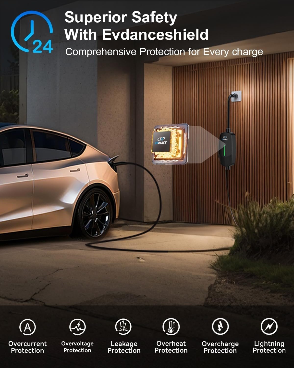 EVDANCE Level 1&2 EV Charger, Electric Vehicle Portable Charger with 25FT Cable, Home EV Charging Station for J1772 Electric Cars, 12A 120V/16A 240V, NEMA 5-15 & NEMA 6-20 Plug