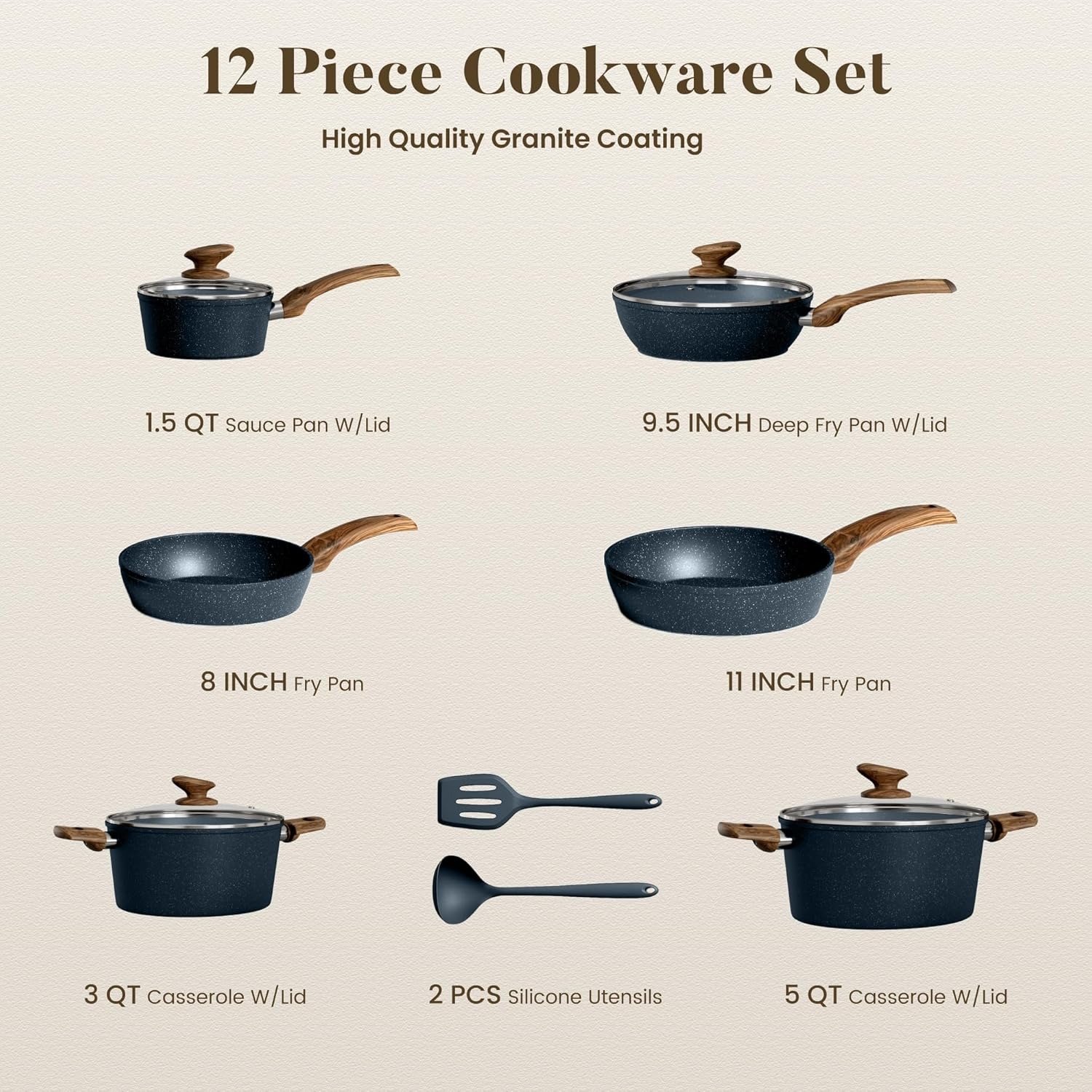 12-Piece Induction Nonstick Cookware Set Kitchen Multi-Functional Pots and Pans Collection