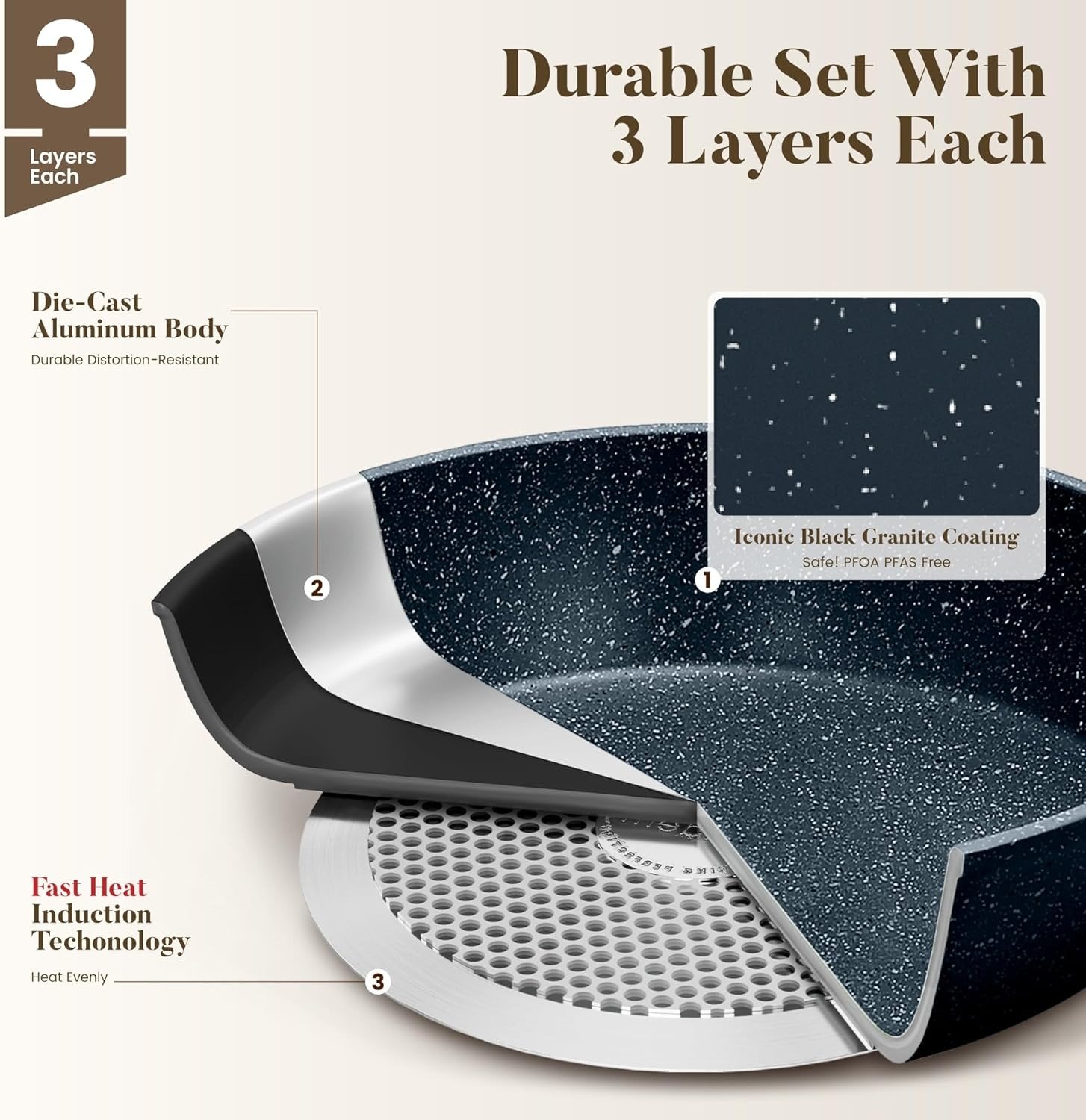 Built for durability and safety, the set is free from harmful chemicals, ensuring non-toxic cooking for the whole family. Whether you’re a beginner cook or a seasoned home chef, this induction nonstick cookware set combines functionality, versatility, and convenience to simplify your kitchen routine and deliver reliable performance for years to come.