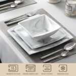 Versatile and gift-ready, this square porcelain dinnerware set complements any kitchen decor and is a perfect gift for housewarmings, weddings, parties, or holidays. Its sturdy construction stands up to daily use, while the timeless marble aesthetic brings elegance to every table setting—whether you’re serving breakfast, lunch, dinner, or special occasion meals.