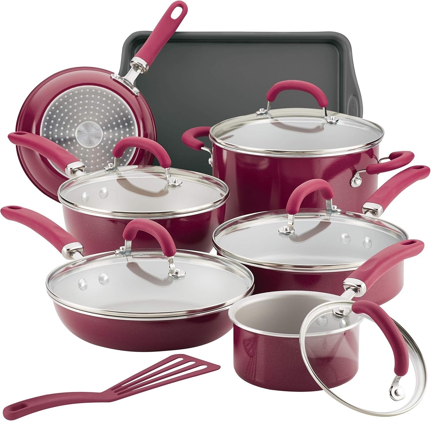 13-Piece Nonstick Cookware Set Induction Compatible Burgundy Shimmer Oven Safe 400°F