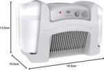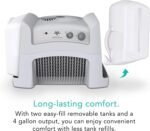 Designed for low maintenance and durability, the humidifier operates quietly to maintain a peaceful environment, even at higher speed settings. Its mist-free operation prevents white dust and over-humidification, making it safe for use around electronics, furniture and flooring. The sleek white rectangular design (10.5″D x 19.5″W x 13.5″H) fits seamlessly into any home decor, while the sturdy construction ensures long-lasting performance for years of reliable use.