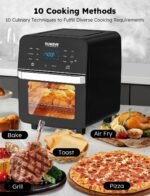 Equipped with an integrated digital smart thermometer, this air fryer oven eliminates guesswork by continuously monitoring food’s internal temperature and auto-shutting off when the desired doneness is reached—ensuring perfectly cooked meats, poultry and fish every time. It features 100 pre-programmed menu presets for one-touch cooking of appetizers, breakfast, lunch, dinner and desserts, plus 50 customizable memory slots to save your favorite recipes. The intuitive digital touch controls let you make on-the-fly adjustments to temperature (50°F-425°F in 5°F precise increments) and time without restarting the cooking process, and the heater maintains constant temperature (no on/off cycling) for uniform results.