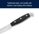 Designed for comfort and maneuverability, the knives boast a lightweight, single-piece precision-stamped construction that’s lighter than forged alternatives, reducing hand fatigue during extended cooking sessions. The traditional triple-rivet handles are curved for a secure, balanced grip, while the stainless steel endcap adds a sleek aesthetic touch that complements any kitchen decor. Full tang construction enhances stability and control, ensuring confident cutting with minimal effort.