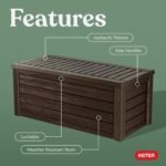 - DURABLE & ATTRACTIVE RESIN CABINET: This deck storage box is attractive and rugged and is made from strong, durable resin with a wood-plank look. It has an easy-lift mechanism for an effortless open and a quiet close.