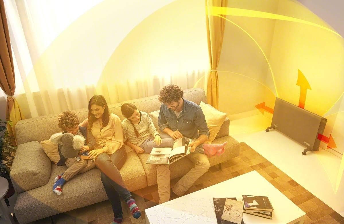 This 1500W convection panel heater delivers fast, efficient warmth for medium to large indoor spaces up to 300 square feet, making it an ideal heating solution for bedrooms, living rooms, home offices, studies and basements. Equipped with an upgraded dual lateral fan system, it improves heat distribution and moves air more evenly throughout the room, warming you up faster and eliminating cold spots for consistent, full-room comfort.