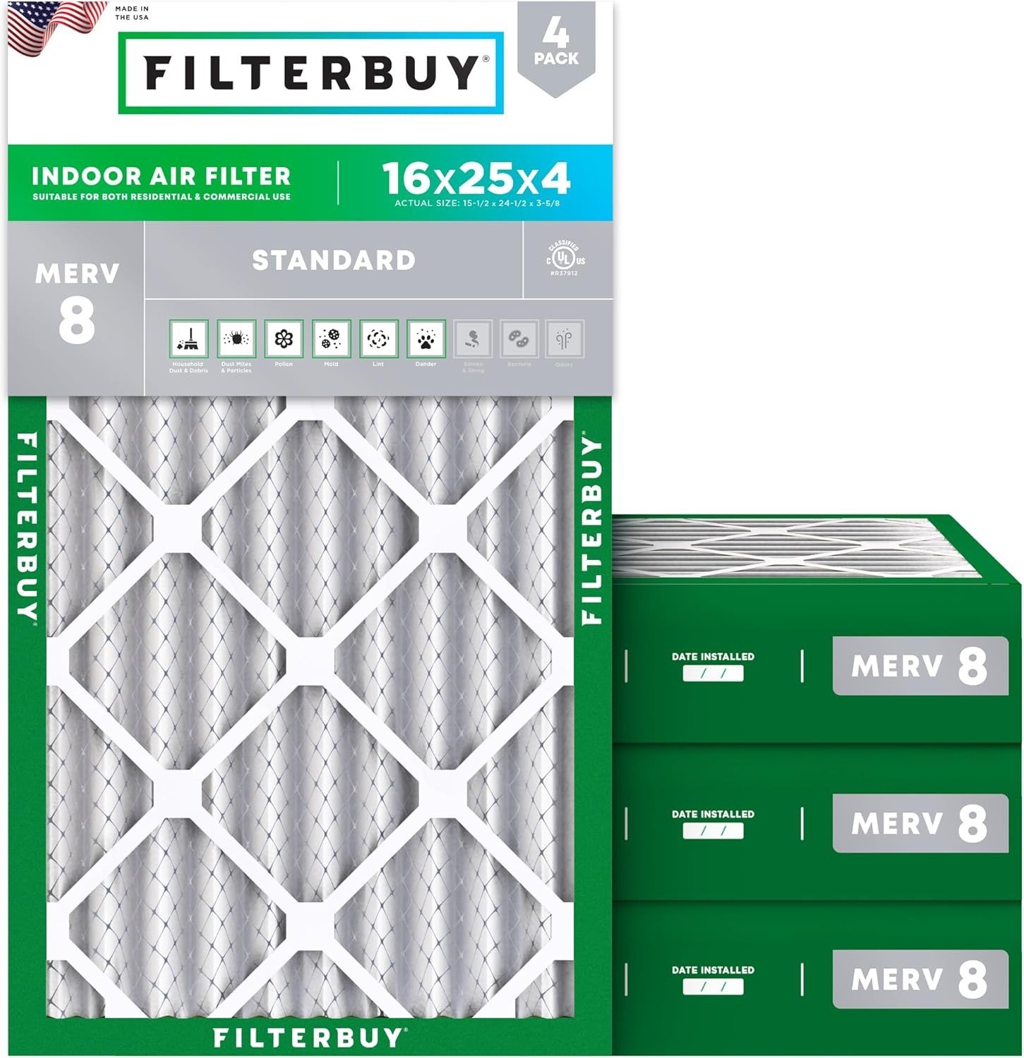 - UNIVERSAL COMPATIBILITY: 16x25x4 replacement air filters for your furnace, air conditioner, or heat pump enhance HVAC system efficiency and support a healthy lifestyle (actual size: 15.50″ x 24.50″ x 3.63″), also compatible with White Rodgers (ACM1400M, ACM1400M-108, FR1400M-108, FR1400M-111) and Pro1 IAQ (F1608, F1612, AZ2-V2-GF-M11-041625)