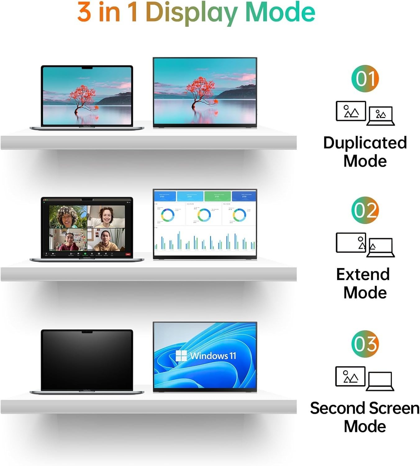 - Give consideration to work and games – through multiple display modes [Copy Mode/Extended Mode/Second Screen Mode/Portrait Mode], we can bring you a clear second screen in the meeting, and expand the screen anytime and anywhere to improve work efficiency and improve the quality of life. Adjusting to HDR mode can upgrade the image to a new level, providing you with brighter highlights,deeper and more realistic colors, more realistic images, and amazing viewing/gaming experience.