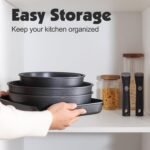 Ideal for home cooks, RV enthusiasts, and anyone looking to maximize kitchen storage, this black granite cookware set blends durable construction with practical functionality. It’s compatible with metal, nylon, wooden, and silicone utensils, and the included pot protectors prevent scratches during stacking—ensuring long-lasting performance for everyday cooking.