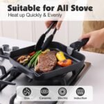 Engineered for universal compatibility, the cookware features a thick, flat, high magnetic conductive base that heats up quickly and evenly, working flawlessly on all stovetops including induction, gas, and electric. The professional wear-resistant bottom design prevents black residue even when cleaned in the dishwasher, and the set is also oven safe for flexible stovetop-to-oven cooking. The lightweight, sturdy construction features vertical pan walls for a larger cooking surface and greater capacity, while the flat bottom keeps oil from spreading for precise cooking control.