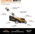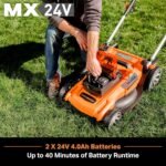 - CORDLESS FREEDOM: Powered by a 2 X 24V MAX* 4.0Ah lithium-ion batteries for up to 40 minutes of runtime while bag collects 15-gallons of grass clippings
