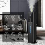 Adding to its versatility, a built-in essential oil tray turns this humidifier into an aroma diffuser—simply add 1-2 drops of your favorite essential oils to the rear tray to enjoy soothing fragrances while humidifying the air. The top-fill design and removable water tank make cleaning quick and easy, and the compact rectangular shape (7″D x 8″W x 25″H) with built-in handles ensures easy placement and movement. This all-in-one humidifier is perfect for homes, offices, yoga rooms, greenhouses, and plant spaces, combining humidification, aromatherapy and night light functions in one sleek black unit.
