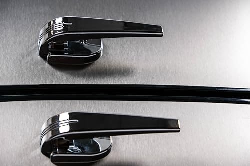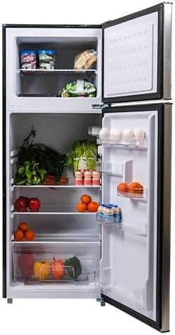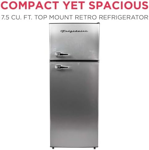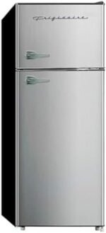 SLEEK DESIGN: Featuring a sleek and durable platinum design with chrome trim and handles, this small fridge freezer adds an upscale retro look that will elevate your space.