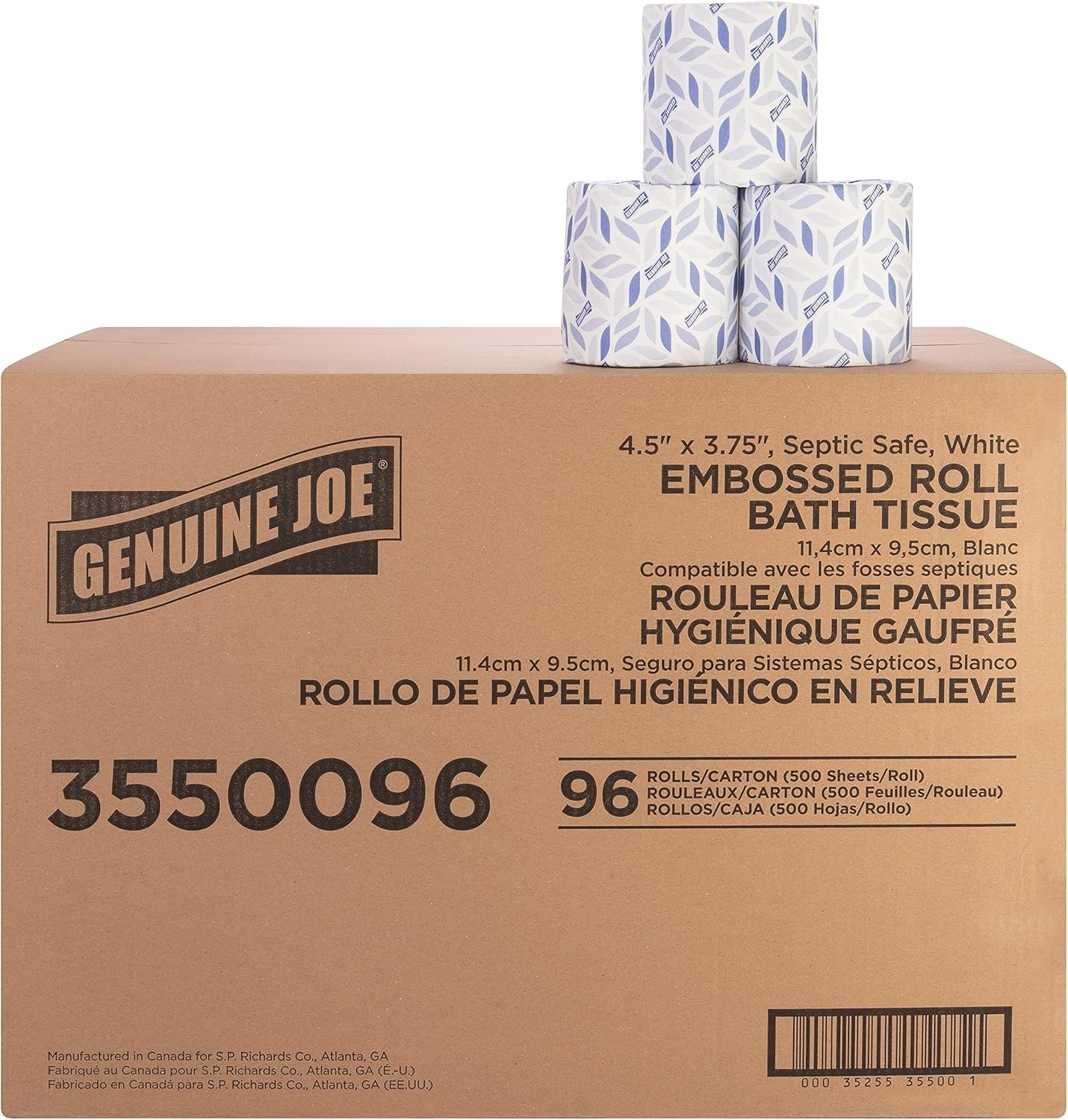Included Components: 96 Individually Wrapped Rolls of 2-Ply Embossed Toilet Paper (500 Sheets Each)