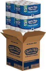 The compact packaging (16.63″L x 12.88″W x 16.75″H) makes storage convenient in closets or utility rooms, while the double roll design means more sheets per roll—extending time between replacements. Whether for daily household use or guest bathrooms, this quilted 2-ply toilet paper combines comfort, strength, and sustainability for a reliable bathroom essential.
