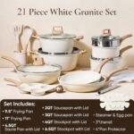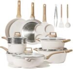 The reinforced die-cast aluminum construction of this kitchen pots and pans set make it resistant to wear and tear, allowing it to withstand frequent usage without compromising its performance.