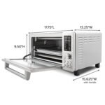The 21QT XL capacity fits family-sized portions including a 12-inch pizza or 4-lb chicken, while the compact brushed stainless steel design (13.25″D x 17.75″W x 9.5″H) saves counter space and complements any kitchen style. The tempered glass dropdown door provides easy access to the cooking cavity, and all included accessories are PFAS-free—safe for families and pets. A removable crumb tray and non-stick air fry basket make cleanup quick and effortless, and the quiet high-speed convection fan ensures efficient cooking without excessive noise. Built for durability and ease of use, this multi-functional oven is perfect for daily meals, small gatherings and versatile home cooking.
