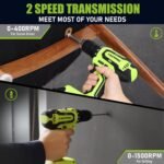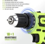 - The cordless drill driver is powered by a max powerful 20-Volt, 1.5AH Lithium-ion battery for enough power for a full range of applications .It features a 3/8 in. keyless chuck with a 19-position clutch adjusts torque output to control the depth of the screw or fastener. The drill is designed with variable 2-speed settings (0-400 rpm and 0-1500 rpm) for multiple purposes.