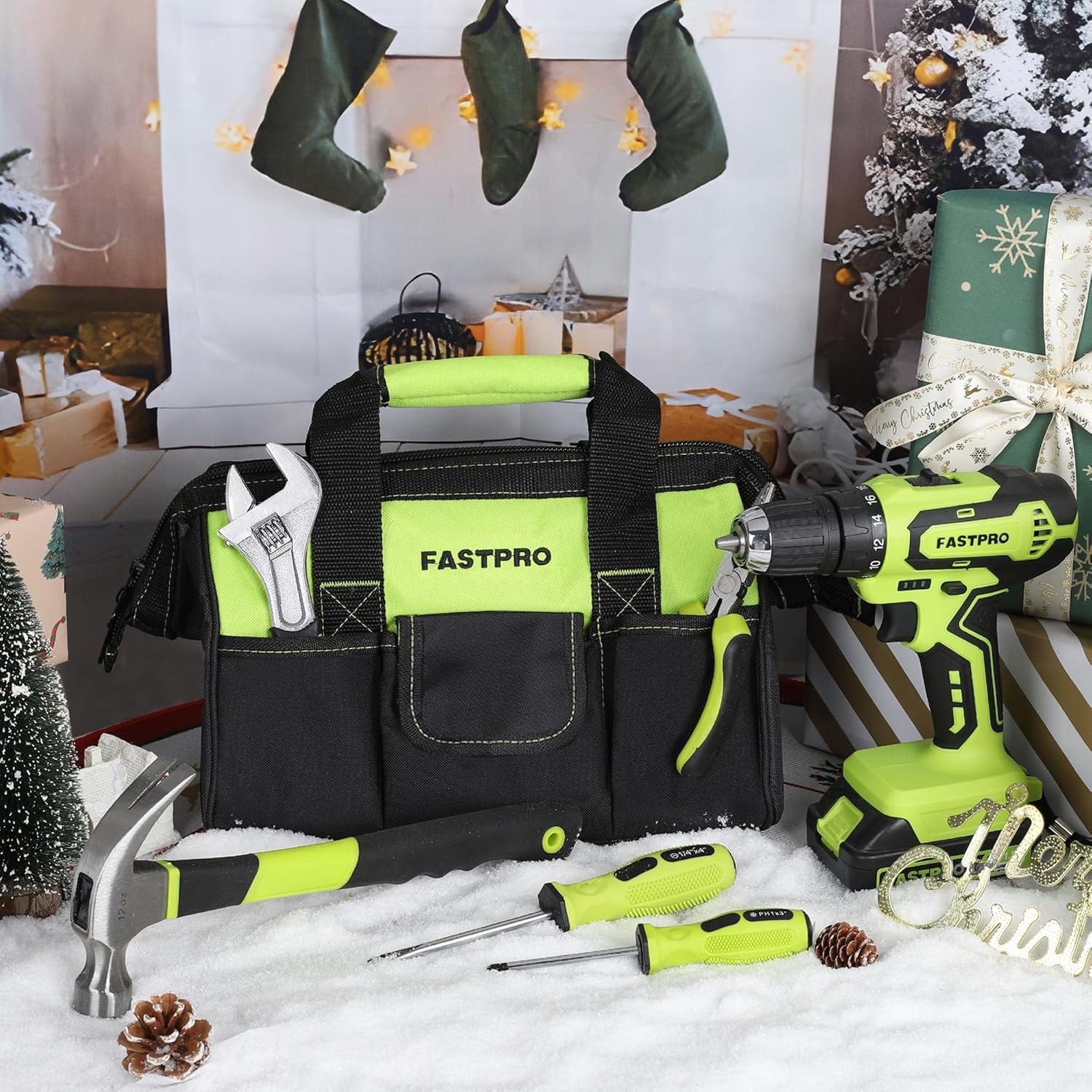 - Includes cordless drill driver, slip joint pliers, groove joint pliers, adjustable wrench, long nose pliers, magnetic screwdriver holder, screwdriver bits, tape measure. The tool kit with drill is perfect for your home use or gifts
